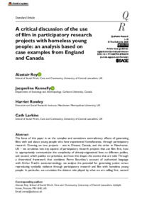 A critical discussion of the use of film in participatory research projects with homeless young people: an analysis based on case examples from England and Canada.