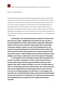 The 4th International Conference on Modern Foreign Languages, Linguistics and Literature was held at the University of Central Lancashire in the UK on 1st June 2017. The six papers collected in this special edition of the Journal of Second Language Teaching and Research have been developed from papers first delivered at the event which brought together over thirty presentations in total from presenters in ten countries. Largely focused on giving opportunities to postgraduate research students to acquire valuable experience of conference participation and attendance, the event also included early career researchers, and addressed a wide range of research topics across theoretical and applied linguistics, as well as literary and cultural studies.