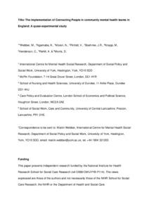 The Implementation of Connecting People in Community Mental Health Teams in England: A Quasi-Experimental Study.