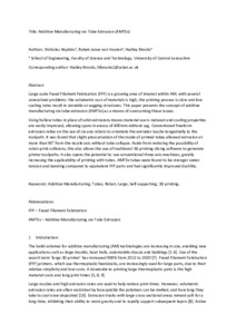Using hollow tubes in place of solid extrusions means material use is reduced and cooling properties are vastly improved, allowing spans in excess of 400 mm without sag. Conventional freeform extrusion relies on the use of six-axis robots to orientate the extruder nozzle tangentially to the toolpath. It was found that slight pressurisation of the inside of printed tubes allowed extrusion at more than 90° from the nozzle axis without tube collapse. Aside from reducing the possibility of robot-print collisions, this also allows the use of traditional 3D printing slicing software to generate printer toolpaths. It also opens the potential to use conventional three-axis machines, greatly increasing the applicability of printing with tubes. AMTEx tubes were found to be stronger under tension and bending compared to equivalent FFF parts and had significantly improved ductility.