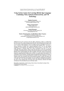 Using Serious Games for Learning British Sign Language Combining Video, Enhanced Interactivity, and VR Technology.