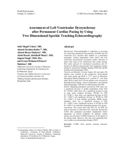 Assessment of Left Ventricular Dyssynchrony after Permanent Cardiac Pacing by Using Two Dimensional Speckle Tracking Echocardiography.