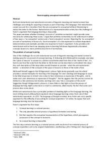 This paper examines whether Ginsborg’s account of ‘primitive normativity’ might provide some resources for addressing these issues. I argue that primitive normativity can be understood in either of two ways: a ‘no conception’ version and a ‘local conception’ version. Rejecting the ‘no conception’ account of normativity in favour of a ‘local conception’ of a rule expressed in context-dependent demonstrations and examples provides one response to Fodor’s argument. It also provides anti-reductionism with at least one stepping stone to learning full-blown linguistically articulated concepts based on a more primitive local form of normativity.
