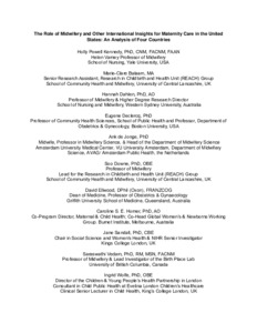 The role of midwifery and other international insights for maternity care in the United States: An analysis of four countries.