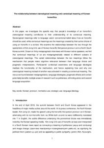 In this paper, we investigate the specific way that people’s knowledge of an honorific’s stereotypical meaning contributes to their understanding of its contextual meaning. Stereotypical meanings refer to language users’ conventional belief about how an honorific should be used, while contextual meanings are the meanings created by their active choice of using an honorific in a context. We examine the relationships between the two through the special lens of Kim Jong Un’s use of Korean honorific first-person pronoun ce in a North-South Korea summit. Drawn on thirty metapragmatic interviews with Korean native speakers, we find that contextual meanings of ce are metapragmatically related to different subsets of stereotypical meanings. The varied relationships between the two meanings follow the mechanism that people make cognitive relevance between their language choice and pragmatic interpretations. Participants’ contextual awareness and language ideologies mediate the functionality of the mechanism, and hence explaining how and why one stereotypical meaning instead of another was activated in creating a contextual meaning. The nexus we found between metapragmatics, language ideologies, pragmatic effects and context potentially benefits multiple areas of research such as politeness, ethnolinguistics and second language acquisition.