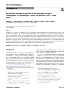 Associations Between Mode of Birth and Neuropsychological Development in Children Aged 4 Years: Results from a Birth Cohort Study.