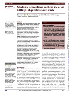 Students’ perceptions on their use of an EHR: pilot questionnaire study.