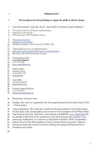 Sommer, Laura, Swim, Janet Kay, Keller, Anna orcid iconORCID: 0000-0003-4478-0400 and Klöckner, Christian Andreas (2019) “Pollution Pods”: The merging of art and psychology to engage the public in climate change. Global Environmental Change, 59 (101992). ISSN 0959-3780