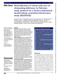Biofortification of wheat with zinc for eliminating deficiency in Pakistan: Study protocol for a cluster-randomised, double-blind, controlled effectiveness study (BIZIFED2).