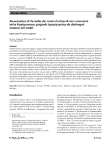 An evaluation of the molecular mode of action of trans-resveratrol in the Porphyromonas gingivalis lipopolysaccharide challenged neuronal cell model.
