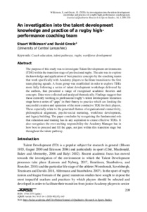 An investigation into the talent development knowledge and practice of a rugby high-performance coaching team.