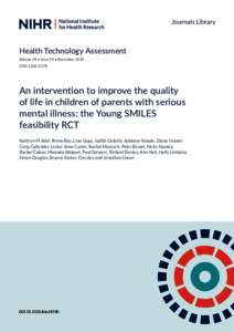 Background Quality of life for children and adolescents living with serious parental mental illness can be impaired, but evidence-based interventions to improve it are scarce. Objective Co-production of a child-centred intervention [called Young Simplifying Mental Illness plus Life Enhancement Skills (SMILES)] to improve the health-related quality of life of children and adolescents living with serious parental mental illness, and evaluating its acceptability and feasibility for delivery in NHS and community settings. Design Qualitative and co-production methods informed the development of the intervention (Phase I). A feasibility randomised controlled trial was designed to compare Young SMILES with treatment as usual (Phase II). Semistructured qualitative interviews were used to explore acceptability among children and adolescents living with their parents, who had serious mental illness, and their parents. A mixture of semistructured qualitative interviews and focus group research was used to examine feasibility among Young SMILES facilitators and referrers/non-referrers. Setting Randomisation was conducted after baseline measures were collected by the study co-ordinator, ensuring that the blinding of the statistician and research team was maintained to reduce detection bias. Participants Phase I: 14 children and adolescents living with serious parental mental illness, seven parents and 31 practitioners from social, educational and health-related sectors. Phase II: 40 children and adolescents living with serious parental mental illness, 33 parents, five referrers/non-referrers and 16 Young SMILES facilitators. Intervention Young SMILES was delivered at two sites: (1) Warrington, supported by the National Society for the Prevention of Cruelty to Children (NSPCC), and (2) Newcastle, supported by the NHS and Barnardo’s. An eight-session weekly group programme was delivered, with four to six children and adolescents living with serious parental mental illness per age-appropriate group (6–11 and 12–16 years). At week 4, a five-session parallel weekly programme was offered to the parents/carers. Sessions lasted 2 hours each and focused on improving mental health literacy, child–parent communication and children’s problem-solving skills. Main outcome measures Phase ll children and parents completed questionnaires at randomisation and then again at 4 and 6 months post randomisation. Quality of life was self-reported by children and proxy-reported by parents using the Paediatric Quality of Life questionnaire and KIDSCREEN. Semistructured interviews with parents (n = 14) and children (n = 17) who participated in the Young SMILES groups gathered information about their motivation to sign up to the study, their experiences of participating in the group sessions, and their perceived changes in themselves and their family members following intervention. Further interviews with individual referrers (n = 5) gathered information about challenges to recruitment and randomisation. Two focus groups (n = 16) with practitioners who facilitated the intervention explored their views of the format and content of the Young SMILES manual and their suggestions for changes. Results A total of 35 families were recruited: 20 were randomly allocated to Young SMILES group and 15 to treatment as usual. Of those, 28 families [15/20 (75%) in the intervention group and 13/15 (87%) in the control group] gave follow-up data at the primary end point (4 months post baseline). Participating children had high adherence to the intervention and high completion rates of the questionnaires. Children and adolescents living with their parents, who had serious mental illness, and their parents were mainly very positive and enthusiastic about Young SMILES, both of whom invoked the benefits of peer support and insight into parental difficulties. Although facilitators regarded Young SMILES as a meaningful and distinctive intervention having great potential, referrers identified several barriers to referring families to the study. One harm was reported by a parent, which was dealt with by the research team and the NSPCC in accordance with the standard operating procedures. Limitations The findings from our feasibility study are not sufficient to recommend a fully powered trial of Young SMILES in the near future. Although it was feasible to randomise children and adolescents living with serious parental mental illness of different ages to standardised, time-limited groups in both NHS and non-NHS settings, an intervention like Young SMILES is unlikely to address underlying core components of the vulnerability that children and adolescents living with serious parental mental illness express as a population over time. Conclusions Young SMILES was widely valued as unique in filling a recognised gap in need. Outcome measures in future studies of interventions for children and adolescents living with serious parental mental illness are more likely to capture change in individual risk factors for reduced quality of life by considering their unmet need, rather than on an aggregate construct of health-related quality of life overall, which may not reflect these young people’s needs. Future work A public health approach to intervention might be best. Most children and adolescents living with serious parental mental illness remain well most of the time, so, although their absolute risks are low across outcomes (and most will remain resilient most of the time), consistent population estimates find their relative risk to be high compared with unexposed children. A public health approach to intervention needs to be both tailored to the particular needs of children and adolescents living with serious parental mental illness and agile to these needs so that it can respond to fluctuations over time. Trial registration Current Controlled Trials ISRCTN36865046. Funding This project was funded by the National Institute of Health Research (NIHR) He