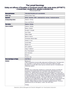 Safety and efficacy of fluoxetine on functional outcome after acute stroke (AFFINITY): a randomised, double-blind, placebo-controlled trial.