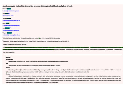 An ethnographic study of the interaction between philosophy of childbirth and place of birth.