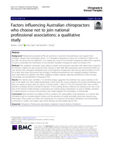 Factors influencing Australian chiropractors who choose not to join national professional associations: a qualitative study.