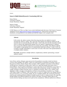 Meetoo, D and Temple, Bogusia (2003) Issues in Multi-Method Research: Constructing Self-Care. International Journal of Qualitative Methods, 2 (3).