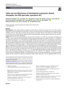 Broadbent, Deborah M., Wang, Amu, Cheyne, Christopher P., James, Marilyn, Lathe, James, Stratton, Irene M., Roberts, John, Moitt, Tracy, Vora, Jiten P. et al (2021) Safety and cost-effectiveness of individualised screening for diabetic retinopathy: the ISDR open-label, equivalence RCT. Diabetologia, 64 (1). pp. 56-69. ISSN 0012-186X