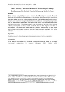 Ethics dumping is a global phenomenon involving the ‘off-shoring’of research. Research that would be prohibited, severely restrictedor regarded as highly patronizing in high-income regions is instead conducted inresource-poor settings. Twenty-eight case studies of ethics dumping were examined through inductive thematic analysis to reveal predisposing factors from the perspective of researchers from high-income regions. Six categories were agreed and further illuminated: Patronizing conduct, unfair distribution of benefits and/or burdens, culturally inappropriate conduct, double standards, lack of due diligence and lack of transparency. The ultimate aim of the paper is to deepen understanding of thesehighly unethical practicesamongst academics who stand against poverty, leading to theirfurther reduction.