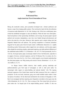 The monograph Lone Star Vistas analyses narrative constructions of Texas as a geographic and social space from the de-facto independence of Mexico in 1821 to the beginning of the U.S. American Civil War in 1861 in selected works of Mexican, Anglo U.S. American, and German travel writing. Its tri-national perspective provides a more complex picture than the existing scholarship on the cultural history of Texas during the time period in question and of the mechanisms of narrative constructions of ideas, places, and peoples. Examining ac-counts penned by a broad range of writers for distinct purposes and audiences, the study further charts different types of journey narratives, thereby formulating a poetics of the travel genre and rendering these texts types more readily amenable for further analysis.