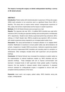 UK dental schools have increased the emphasis on patient safety by the implementation of national healthcare models, for example WHO checklists and pre‐operative briefings. These strategies both aim to improve communication and teamwork. Increased levels of staff supervision foster greater quality of teaching; however, this has resulted in reduced student clinical experience. A proposed minimum standard for undergraduate surgery is suggested to ensure safe and competent dental practitioners of the future.