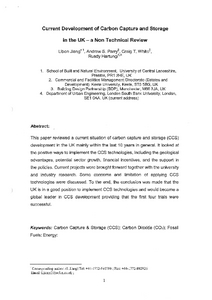 This paper reviewed a current situation of carbon capture and storage (CCS) development in the UK mainly within the last 10 years in general. It looked at the positive ways to implement the CCS technologies, including the geological advantages, potential sector growth, financial incentives, and the support in the policies. Current projects were brought forward together with the university and industry research. Some concerns and limitation of applying CCS technologies were discussed. To the end, the conclusion was made that the UK is in a good position to implement CCS technologies and would become a global leader in CCS development providing that the first four trials were successful.