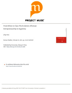 From Ethnic to Class: Evolution of Korean Entrepreneurship in Argentina.