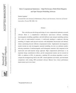 Boris computational spintronics—High performance multi-mesh magnetic and spin transport modeling software.
