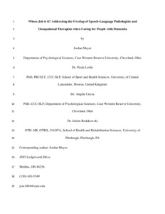 Whose Job Is It? Addressing the Overlap of Speech-Language Pathologists and Occupational Therapists When Caring for People With Dementia.