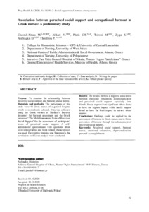 Purpose: To examine the relationship between perceived social support and burnout among nurses. Materials and methods: The participants of this study were 42 Greek nurses of a general hospital which were randomly selected. Data was collected using the Greek version of Maslach’s Burnout Inventory for burnout assessment and the Greek version of ‘The Multidimensional Scale of Perceived Social Support’ for the assessment of participants’ levels of perceived social support. A self-administered questionnaire with questions about socio-demographic and work-related characteristics was used. Descriptive statistics and Spearman’s rho correlation coefficient analysis were conducted. Results: The results showed a negative association between emotional exhaustion, depersonalization and perceived social support, especially from friends. Social support from significant others found to have the highest impact while family support found to have the least impact in nurses’ social support. Conclusions: Findings could be applied to the assessment of burnout in Greek nurses and to future prevention of burnout through the enhancement of perceived social support.