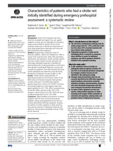 Characteristics of patients who had a stroke not initially identified during emergency prehospital assessment: a systematic review.