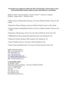 Frontal plane knee alignment mediates the effect of frontal plane rearfoot motion on knee joint load distribution during walking in people with medial knee osteoarthritis.