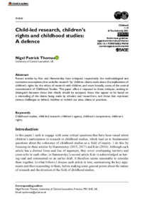 Child-Led Research, Children’s Rights and Childhood Studies: a Defence.