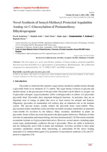The first report on a novel and efficient synthesis of benzyl-methoxy protected aspalathin derivative has been described via C-glucosylation of pentamethoxy dihydropropane. The synthesized compound was characterized by 1H, 13C NMR, COSY, and HSQC techniques.