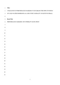 Utilisation of performance markers to establish the effectiveness of cold-water immersion as a recovery modality in elite football.