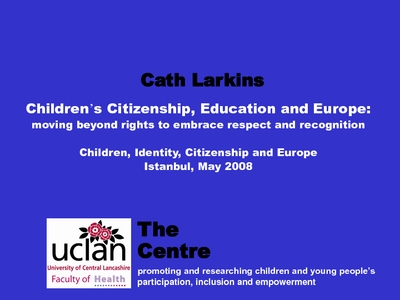'Children's Citizenship, Education and Europe:moving beyond rights to embrace respect and recognition'.