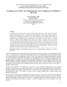 Karalekas, Dean (2020) Navigating Terra Nullius: The Ababda and the Case for Indigenous Land Rights in Bir Tawil. Global Journal of Economics and Finance, 4 (2). pp. 41-49. ISSN 2578-8809