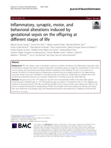 Granja, Marcelo Gomes, Alves, Letícia Pires, Leardini-Tristão, Marina, Saul, Michelle Edelman, Bortoni, Letícia Coelho, de Moraes, Flávia Maciel, Ferreira, Erica Camila, de Moraes, Bianca Portugal Tavares, da Silva, Victória Zerboni et al (2021) Inflammatory, synaptic, motor, and behavioral alterations induced by gestational sepsis on the offspring at different stages of life. Journal of Neuroinflammation, 18 (1). p. 60. ISSN 1742-2094