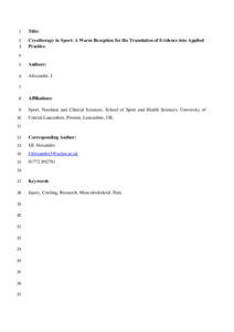 Cryotherapy in Sport: A warm reception for the translation of evidence into applied practice.