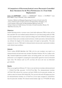 A COMPARISON OF ELECTROMECHANICAL VERSUS PNEUMATIC-CONTROLLED KNEE SIMULATORS FOR THE WEAR PERFORMANCE OF A TOTAL ANKLE ARTHROPLASTY.