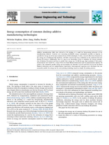 Additive manufacturing (AM), also referred as 3D printing, is a small but fast-growing sub-sector of the manufacturing industry. Concerns over increasing worldwide energy consumption provides an impetus to quantify the energy use of the most common forms of AM technologies. To date, research efforts have focussed on the energy use of industrial AM machines, and little research has been conducted on the numerous low-cost desktop 3D printers. Additionally, there is a gap in our knowledge of how to minimise the energy consumption of desktop 3D printers and how to predict their energy use. To fill this gap, high resolution (1 Hz) power measurements were made for a range of low-cost fused filament fabrication and vat polymerisation desktop 3D printers. The volumetric specific energy use was found to be 24.8 – 85.7 kJ/cm3 and 10.8 – 21.5 kJ/cm3 for fused filament fabrication and vat polymerisation respectively. Semi-empirical equations were developed that can accurately predict the energy use for each printing technology based on simple 3D printing metrics.