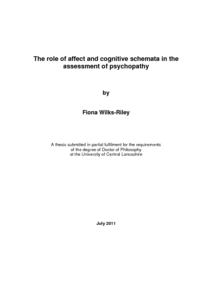 Wilks-Riley, Fiona R (2011) The role of affect and cognitive schemata in the assessment of psychopathy. Doctoral thesis, University of Central Lancashire.