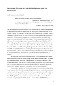 Introduction: We Construct Collective Life By Constructing Our Environment.