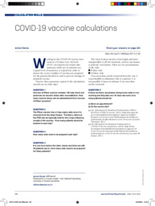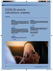 Davies, Janice Anne (2021) COVID-19 vaccine calculations. Journal of Prescribing Practice, 3 (3). p. 106. ISSN 2631-8385