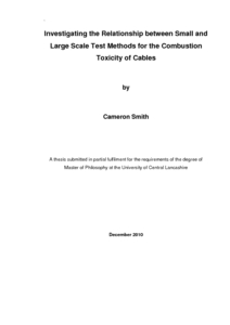 Smith, Cameron L G (2011) Investigating the Relationship between Small and Large Scale Test Methods for the Combustion Toxicity of Cables. Masters thesis, University of Central Lancashire.