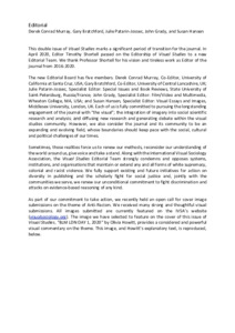 Conrad Murray, Conrad, Bratchford, Gary, Patarin-Josses, Julie, Grady, John and Hansen, Susan (2020) Editorial." Visual Studies, 35(2-3), pp. 97–98. Taylor and Francis.