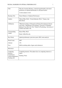 Filho, Edson, Dobersek, Urska and Husselman, Tammy-Ann orcid iconORCID: 0000-0002-3206-5496 (2021) The role of neural efficiency, transient hypofrontality and neural proficiency in optimal performance in self-paced sports: a meta-analytic review. Experimental Brain Research . ISSN 0014-4819