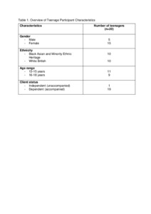 The study was undertaken in 20 refuges in England. Repeat qualitative interviews with 20 young people aged 13–18 and single interviews with refuge staff explored teenagers’ experiences of refuge life. Access to digital technology emerged as a central theme for this group of young people.
