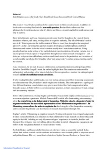 Patarin-Jossed, Julie, Grady, John, Bratchford, Gary, Hansen, Susan and Murray, Derek Conrad (2021) Editorial, Visual Studies, 36:1, 1-2. Taylor and Francis.
