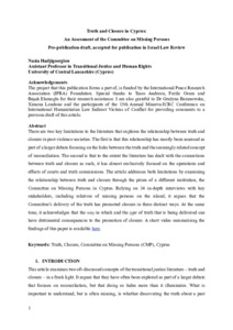 Truth and Closure in Cyprus: An Assessment of the Committee on Missing Persons.