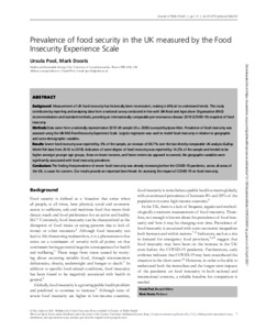 Prevalence of food security in the UK measured by the Food Insecurity Experience Scale.